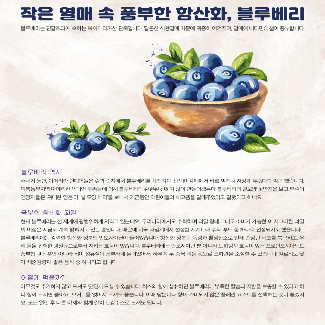 블루베리는 맛있고 건강에도 좋은 과일입니다. 꾸준히 섭취하여 다양한 효능을 누리시기 바랍니다.