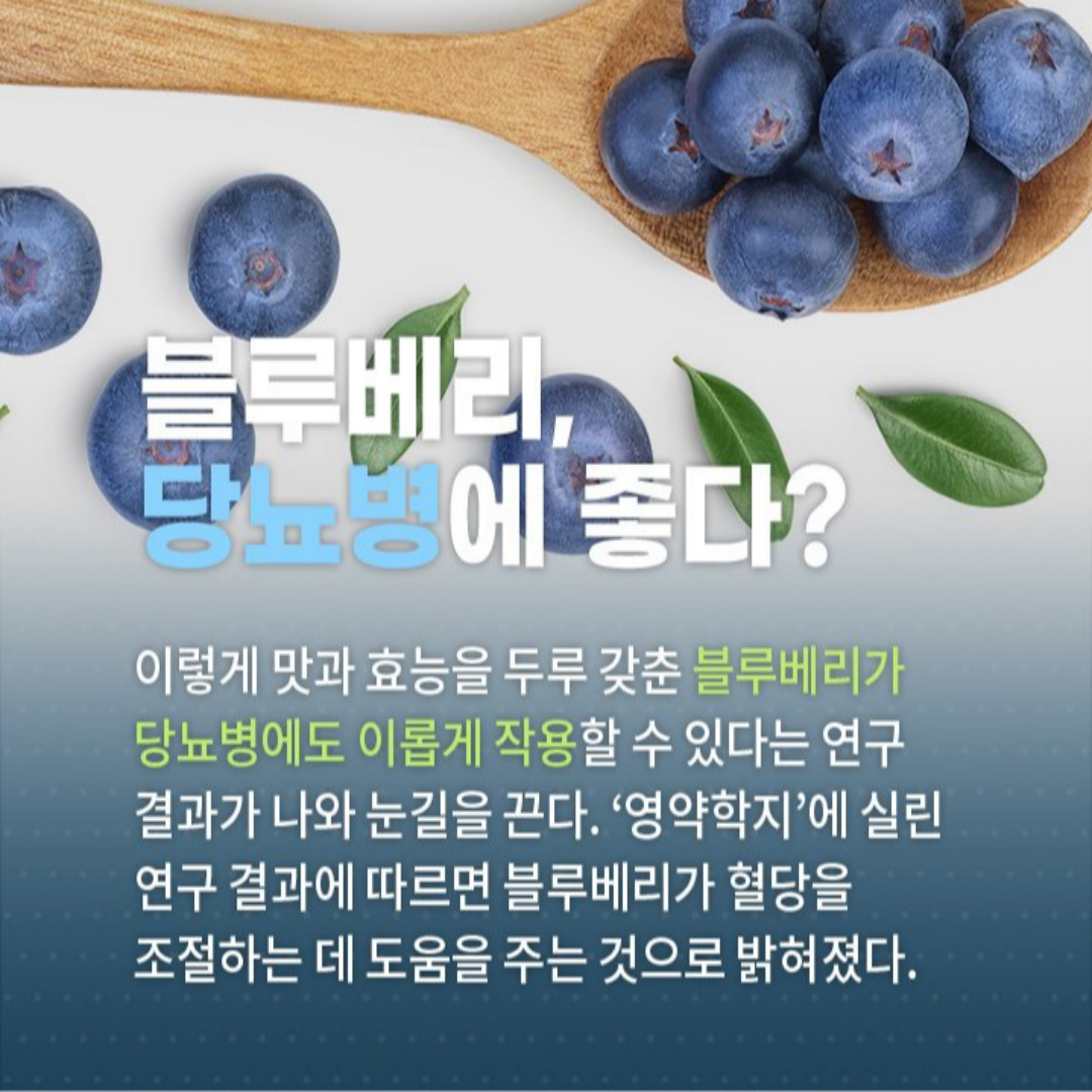 블루베리에는 당 조절에 도움을 주는 성분이 포함되어 있습니다. 블루베리의 섭취는 혈당 수치를 안정적으로 유지하는 데 기여할 수 있습니다. 연구에 따르면, 블루베리를 정기적으로 섭취하면 제2형 당뇨병 환자에게 긍정적인 영향을 미친다는 결과도 있습니다.