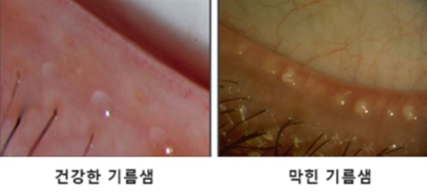 우리눈에는 마이봄샘(기름막)이 있습니다.이곳에서 나오는 기름이 각막에 도포되어 눈물의 증발을 막아주는 기능을 합니다. 마이봄샘은 눈꺼풀에 위치한 샘으로, 눈물의 기름층을 형성하여 눈의 수분을 유지하는 역할을 합니다. 하지만 이 기름샘이 노폐물이 쌓여 막히면 기름 배출이 원활히 되지않아 눈물이 빠르게 증발해버립니다. 마이봄샘의 기능이 저하되면 눈의 건조함이 발생하고, 이로 인해 비문증이 악화될 수 있습니다.