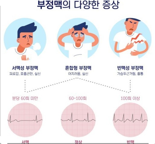부정맥은 심박수가 비정상적으로 빨라지거나 느려지는 것을 뜻해요. 심장박동이 규칙적이지 않으면 여러 가지 건강 문제를 초래할 수 있어요. 심장은 전기 신호에 의해 뛰는데, 이 신호가 올바르게 전달되지 않으면 부정맥이 발생할 수 있어요.