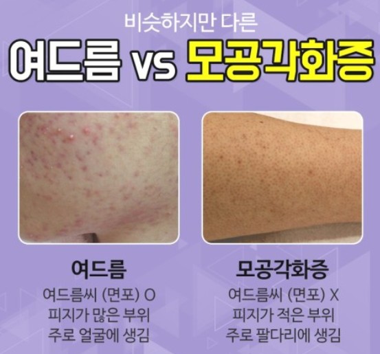 여드름과 모공각화증은 비슷해 보일 수 있지만, 여드름은 염증이 동반되는 경우가 많고, 모공각화증은 통증이 없다는 점에서 차이가 있어요. 여드름은 주로 얼굴에 많이 나타나고, 모공각화증은 팔이나 다리에서 주로 발생해요.