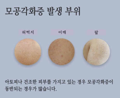모공각화증은 주로 팔, 다리, 엉덩이, 그리고 가슴 부위에 많이 발생해요. 이 부위들은 피부가 상대적으로 두껍고, 각질이 쌓이기 쉬운 곳이기 때문이에요.