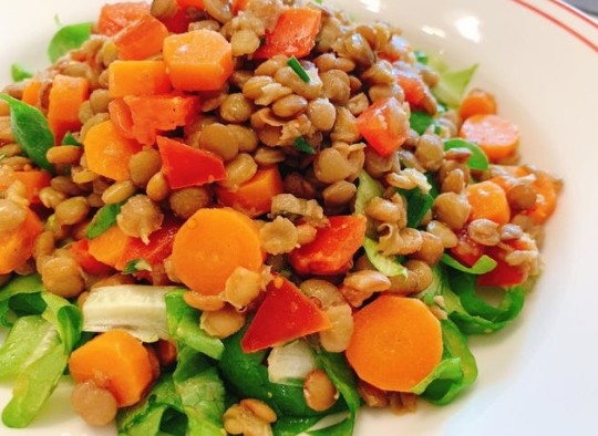 저녁: 렌틸콩 샐러드 + 고구마 찜 + 낫토