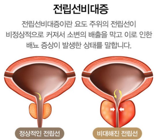 남성호르몬인 테스토스테론과 그 대사산물인 디하이드로테스토스테론(DHT)의 영향으로 전립선 조직이 증식합니다.