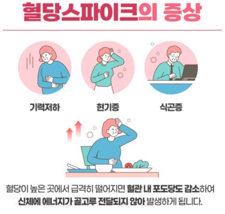 혈당 스파이크의 가장 일반적인 증상은 식사를 한 후 30분~2시간 이내에